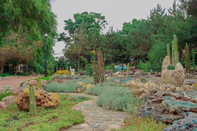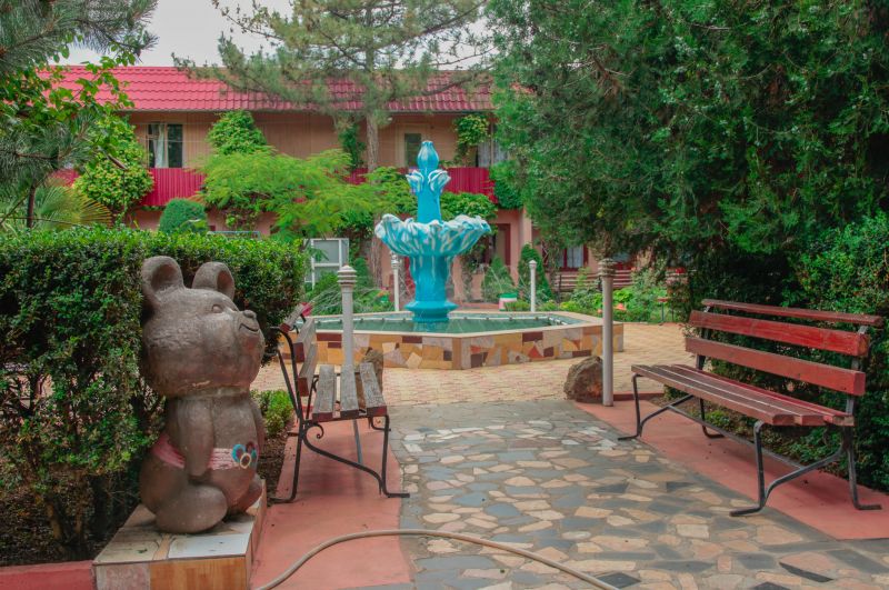 Гостям предлагается широкая инфраструктурная база – песчано-галечный пляж, оборудованный солярий с навесами и лежаками. Ухоженная, очень зеленая территория с разновидными растениями: розами, кактусами, банановыми пальмами, кипарисами, самшитами, с удобными лавочками для отдыха. Отдохнуть и укрыться от солнца можно на красивейшей аллее голубых елей и Крымской сосны.