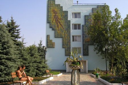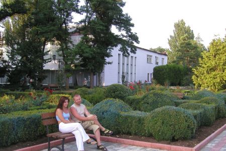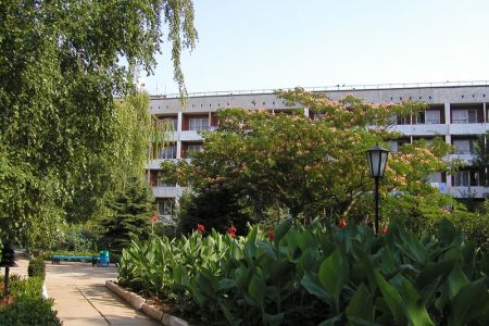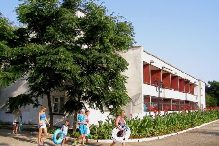 или маршрутным такси до пос. Николаевка, далее до пансионата на такси или пешком.