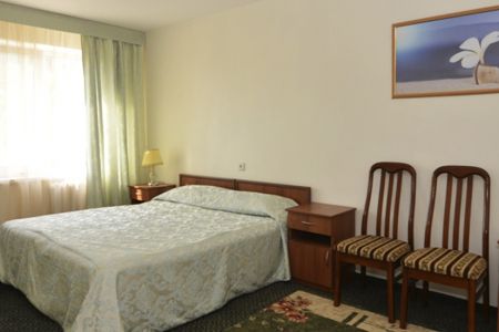 Самолетом до аэропорта г. Симферополь, далее из аэропорта доехать до микрорайона М. Жукова, далее городские маршрутки до пос. Николаевка, далее до пансионата на такси или пешком.