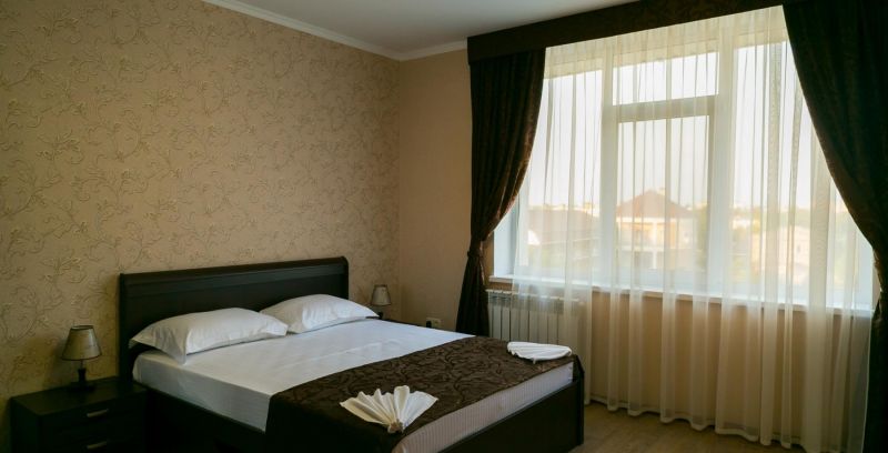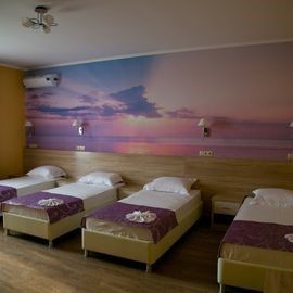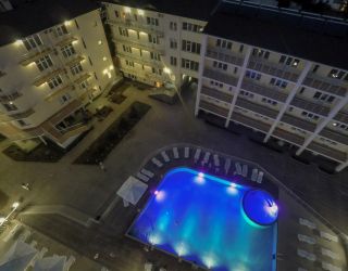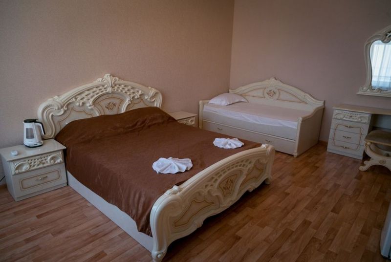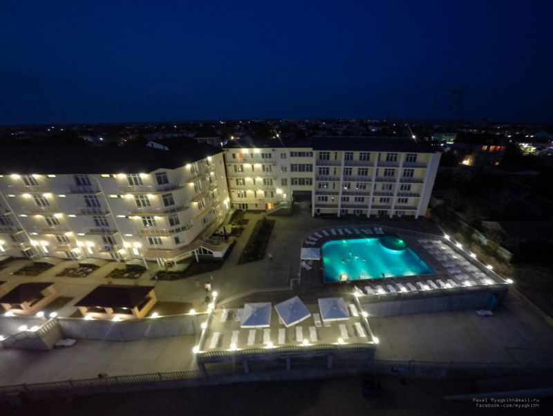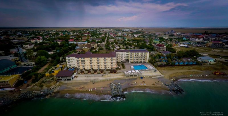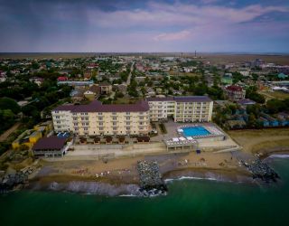 Крыма в пгт. Николаевка. . Рядом с отелем все необходимые объекты инфраструктуры: аптека , медпункт ,набережная с развлечениями, продуктовые магазины, кафе, бюро экскурсий, парикмахерская. Территория отеля огорожена и тщательно охраняется , в 5 шагах находится собственный песчано - галечный пляж с пологим морским дном идеально подходящим для отдыха с детьми. На территории отеля находится открытый бассейн , к услугам отдыхающих бар с ассортиментом прохладительных напитков , широкие комфортные беседки , где на свежем воздухе вы сможете отведать вкусные блюда приготовленные на мангале. Отель работает круглогодично и отвечает требованиям международных стандартов категории (***) три звезды.