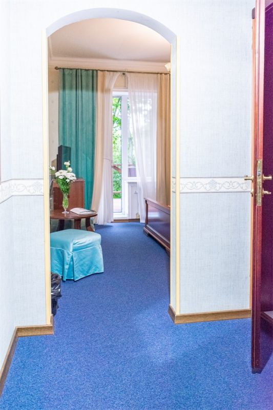 Трехэтажный корпус гостевого дома разместился в тихом зеленом квартале города. В распоряжении гостей номера Double и Twin с интерьерами, выдержанными преимущественно в благородных темных оттенках в классическом стиле. В каждом номере есть санузел, душ или ванна и LCD-телевизор.