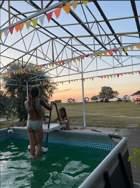 База расположена на 1 береговой линии. Бассейн каркасный 6м х 3м.