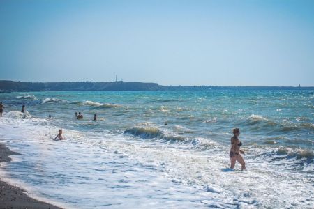 Самолетом до аэропорта г. Симферополь, далее на троллейбусе «Аэропорт-Севастополь» до остановки «Автостанция Курортная», далее на маршрутном такси «Симферополь Курортная – Береговое» до остановки «Центральный пляж», далее пройти пешком 790 м до отеля.