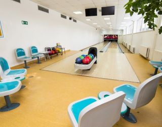 Комфортные номера, крытый бассейн (на реконструкции) длинной 25 м и шириной 14 м, спортивный комплекс (волейбольный/баскетбольный, теннисный и гимнастический залы), тренажерный зал, бильярд, настольный теннис, боулинг. Пункт проката спортивного инвентаря (ролики, велосипеды, лыжи, коньки). Лодочная станция (лодки, катамараны). Библиотека. Кинозал. Конференц-зал. Охраняемая стоянка для автомобилей. Собственный оборудованный пляж на озере.