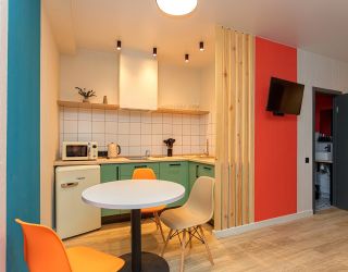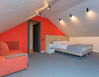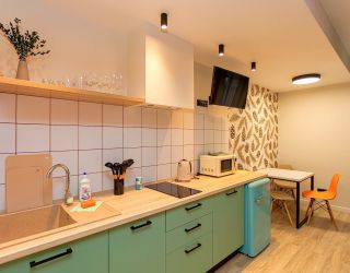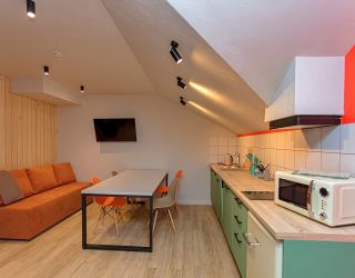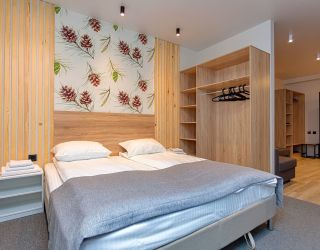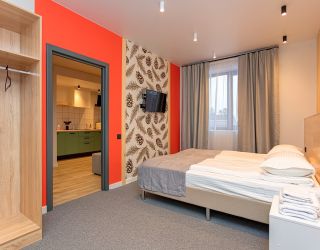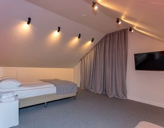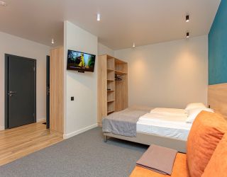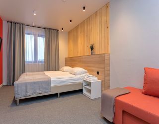 Для размещения гостей предлагаются деревянные двухэтажные коттеджи. В каждом из них несколько изолированных номеров и общая кухня-гостиная, полностью оборудованная бытовой техникой, посудой, с обеденной зоной и гостинной. Санузлы оборудованы душевыми кабинами, предоставляются полотенца. В каждой спальне – двухспальные или односпальные кровати, тумбы, телевизор. В свободном доступе беспроводной интернет wi-fi.