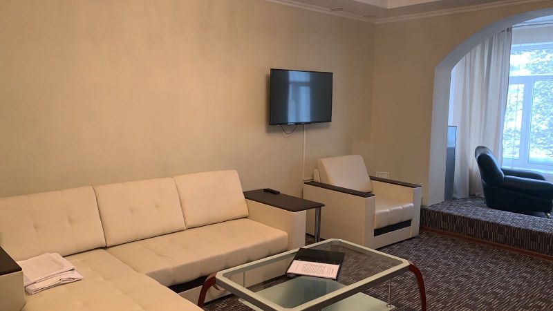 Гостиница стоит у подножия горы Зеленая. Четырехэтажный корпус с мансардой предлагает для размещения комфортабельные номера с необходимой мебелью и персональным санузлом. Номер укомплектованы кабельным ТВ, телефоном, чайником, в ванной комнате - душ. В номерах повышенной комфортности дополнительно установлен холодильник, предоставляются тапочки и халаты.
