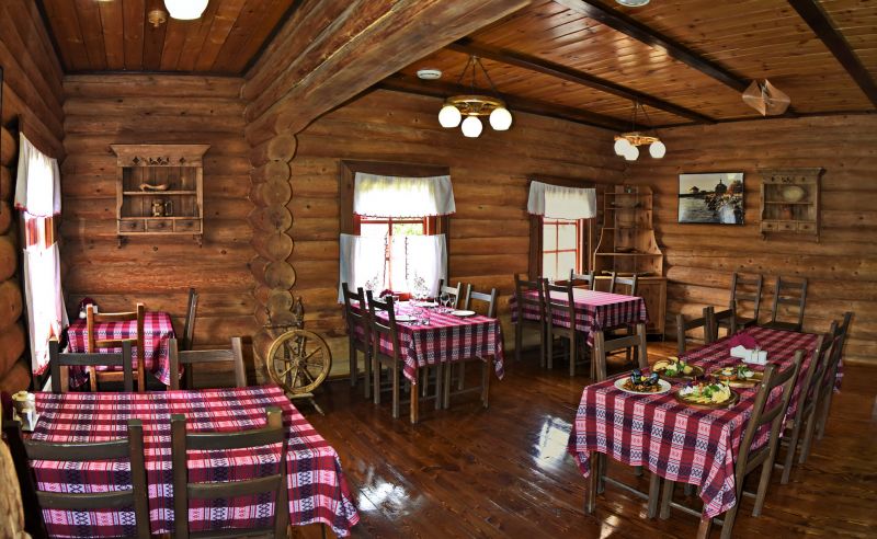 В жилых корпусах гостям предлагаются номера с открытыми бревенчатыми стенами, сохранившими запах дерева. Интерьер выдержан в русском деревенском стиле, коридоры и холлы украшены предметами быта поморов. Номера рассчитаны на размещение от одного до четырёх человек.