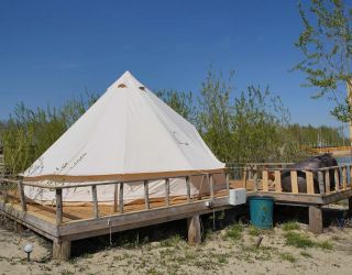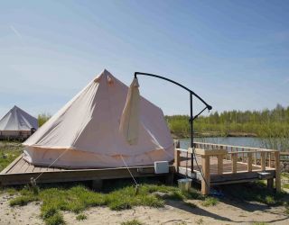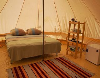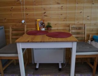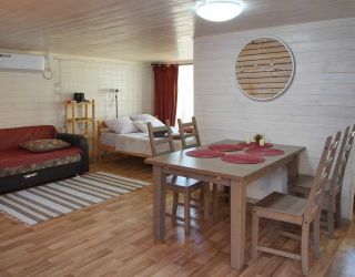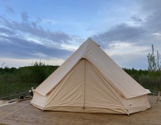 Для размещения предусмотрены два вида номеров – летние шатры с удобствами на территории, и круглогодичные домики, в каждом из которых есть кухонная зона, санузел с душевой кабиной. Во всех категориях есть чайник, рядом с шатрами установлены мангалы. Организованное питание не предусмотрено.