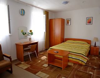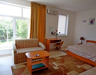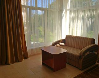 В современном трёхэтажном здании к услугам отдыхающих одно- и двухкомнатные номера с полным комплектом мебели, телевизором, холодильником, кондиционером, кухней.
