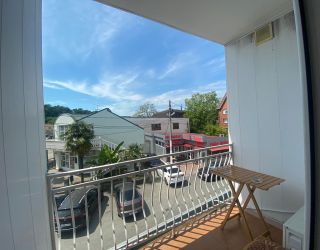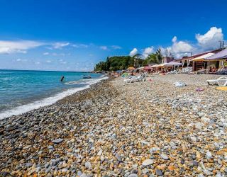 Ближайший пляж галечный, оснащен всем необходимым для комфортного отдыха: лежаками, раздевалками, зонтами и навесами от солнца. Проход к пляжу очень комфортный без подъемов и спусков, а надземный переход через дорогу оборудован эскалаторами и лифтами.