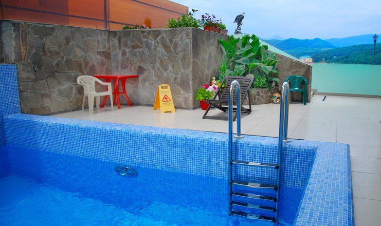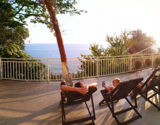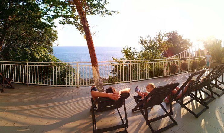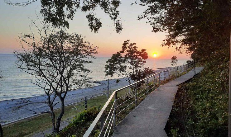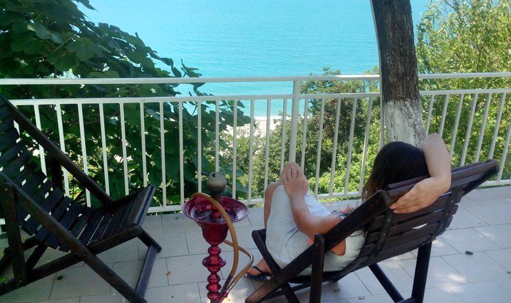 Поездом до ж/д вокзала Сочи, далее на рейсовом автобусе №77 до остановки «Нижнее Буу», далее пройти пешком 950 м до отеля.