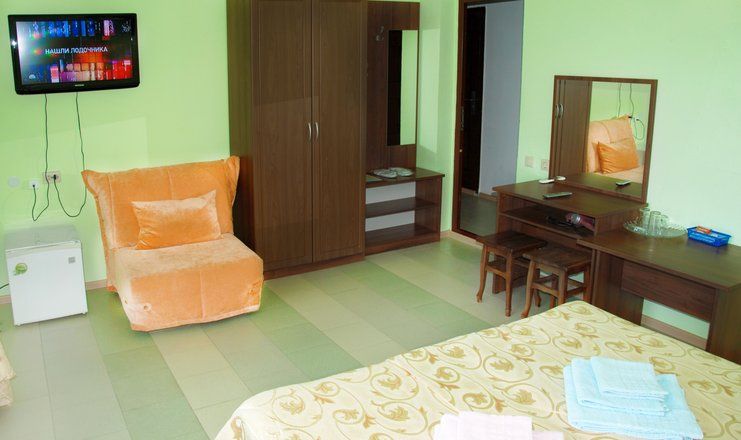 Номера с ванными комнатами оснащены душем. Из обустройства – мебель и спутниковое телевидение, холодильник и сплит-кондиционирование. В большей части номеров (69 из 117) можно организовать дополнительное место, которое для детей от трех до четырнадцати лет оплачивается со скидкой.