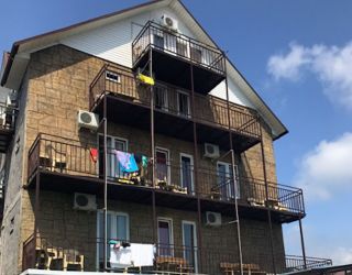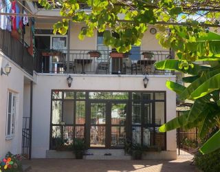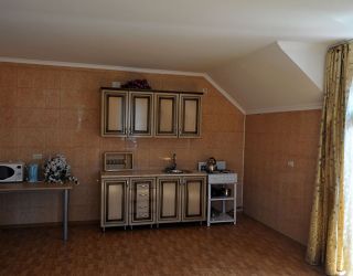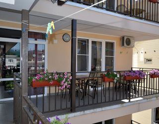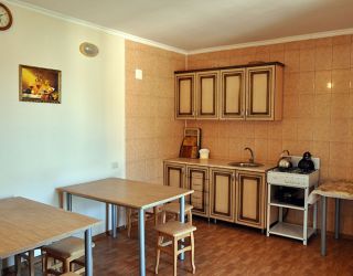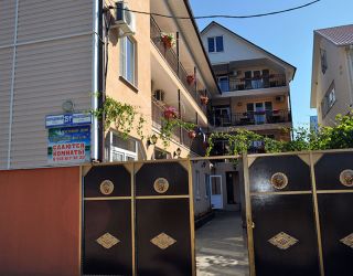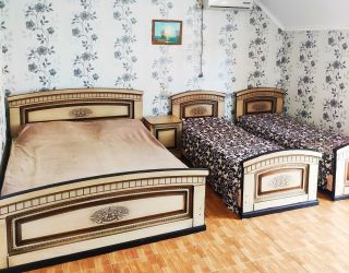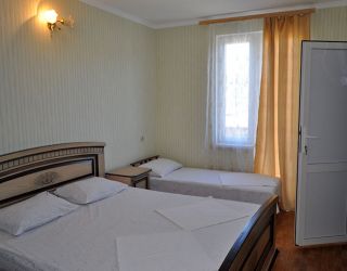 Трехэтажный корпус гостевого дома занимает небольшую закрытую территорию в 650 метрах от моря. В распоряжении гостей комфортабельные номера, способные вместить от 2-х до 5-ти человек. В каждом номере предусмотрена собственная ванная комната, есть кондиционер, небольшой холодильник, телевизор с плоским экраном. На каждом этаже организована кухня, где отдыхающие могут приготовить или разогреть еду.