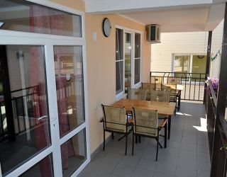 Среди услуг также – мангальная зона в зеленом внутреннем дворике, уличный бассейн. В 5 минутах ходьбы разместился обустроенный галечный пляж с кафе, сувенирными палатками и пунктом проката пляжного инвентаря.