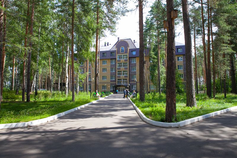 Самолетом до аэропорта г. Казань, далее на электричке до станции «Казань-Пасс.», пешком 310 м до остановки «Железнодорожный вокзал», далее на автобусе № 10а до остановки «Горьковское шоссе», далее на автобусе № 110 до остановки «Санаторий Сосновый Бор», пешком 600 м.