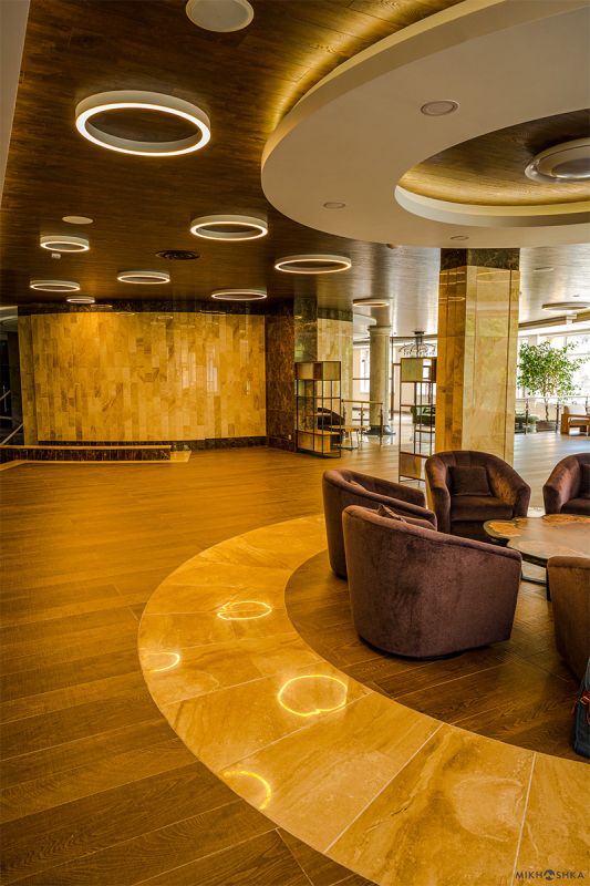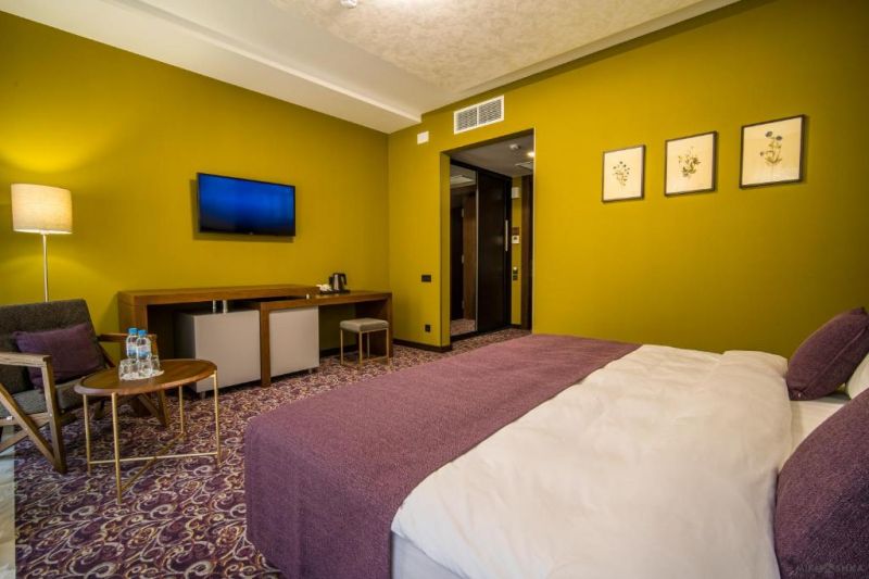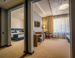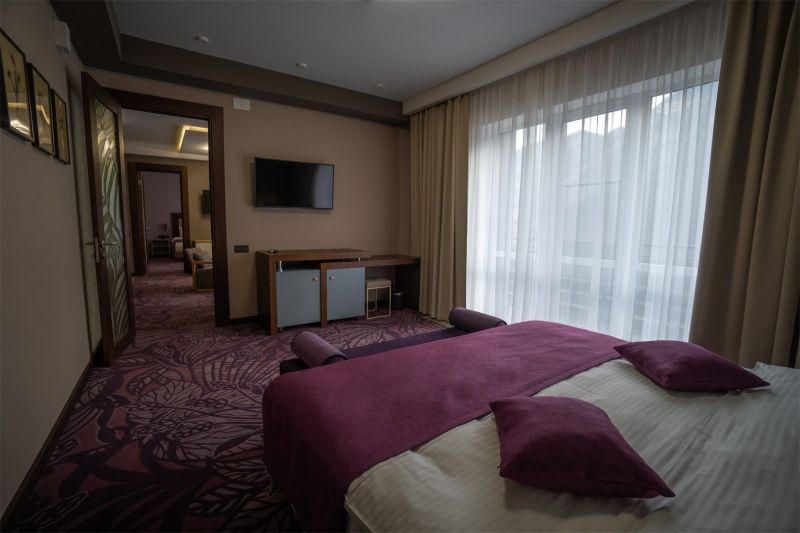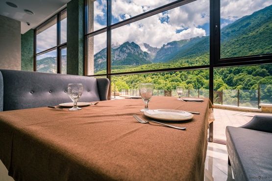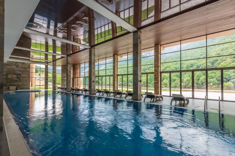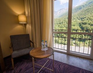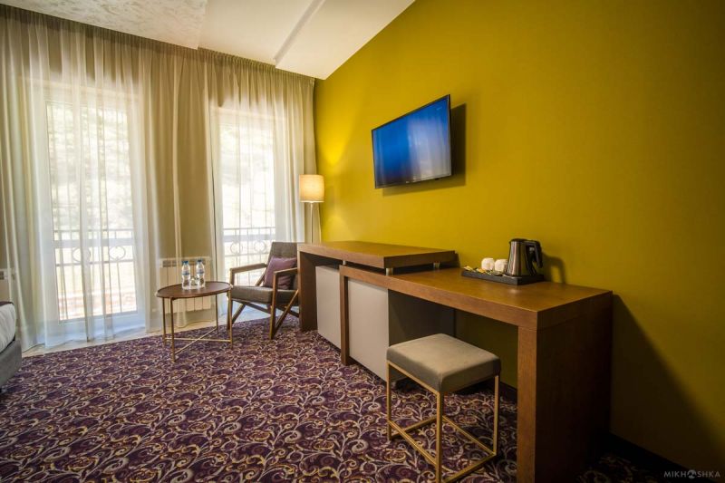 Корпус отеля, напоминающий шале, расположен на благоустроенной территории в отделении от городского шума среди Кавказских гор. Жилой фонд включает в себя номера разной категории: однокомнатные Стандарты, двухкомнатные Люксы, Семейные, Апартаменты, также есть специальные номера для людей с особенными потребностями. В комнатах лаконичный стильный интерьер, есть все необходимое для комфортного отдыха — сплит-система, собственный душ, кондиционер, бытовая техника: плазменный телевизор, фен, электрочайник, удобный мебельный гарнитур. Апартаменты оснащены мини-кухней, в некоторых номерах предусмотрены балконы, откуда открываются потрясающие панорамные виды на горы.