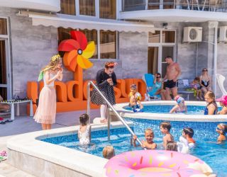 В отеле работают столовая и кафе с европейской, русской и кавказской кухней. В распоряжении гостей открытый бассейн с подогревом, рядом обустроена релакс-зона с шезлонгами. Досуг скрасят показы кинофильмов и анимационные программы для взрослы и детей, ежедневно проходящие в отеле. Среди услуг — автостоянка для гостей на машинах, прачечная. беспроводной интернет на всей территории. Для детей организована игровая площадка, в общем бассейне создано детское отделение с горками, регулярно проводятся детские дискотеки, а малышам администрация предоставляет кроватки-манежи, прогулочные кроватки и стульчики для кормления.