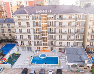 Отель «Элефтерия» расположен в центре курортного поселка Витязево в шаговой доступности от главных развлекательных мест. Рядом — парк аттракционов, аквапарк, дельфинарий, боулинг-клуб, туристическая улица — бульвар Паралия с большим выбором кафе и магазинчиков. За 15—20 минут можно добраться как до аэропорта, так и до железнодорожного вокзала, разместившегося в Верхнем Джемете.