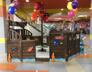 - детская игровая комната с воспитателем «Леготека»; игровые приставки сони плейстейшен, детский увлекательный квест «Корабль Сокровищ» с морской солью, выполняющий функцию соляной комнаты; на верхней палубе под куполом, расположен планетарий-кинотеатр