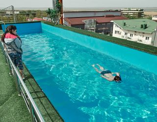 - пользование открытым подогреваемый бассейном для взрослых и подогреваемым детским бассейном с островком и горками, расположенными на крыше отеля
