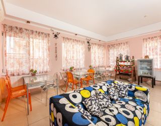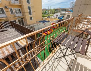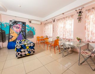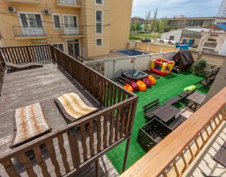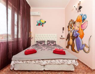 Четырехэтажный корпус арт-отеля (без лифта) располагается на закрытой охраняемой территории. Жилой фонд, рассчитанный на 70 гостей, предлагает 2-х, 3-х местные номера разной категории — от Экономов до Апартаментов. Везде, независимо от уровня комфорта, предусмотрена сплит-система и собственный душ. В ряде комнат имеются балконы, а Апартаменты оснащены кухней.
