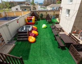 На территории арт-отеля есть бар, также организована общая кухонная зона. В распоряжении гостей бассейн с джакузи, охраняемая автостоянка, беспроводной интернет. Для юных гостей предусмотрена игровая площадка с горками, детский клуб, регулярно проводятся интересные мастер-классы, а малышам предоставляются кроватки-манежи.