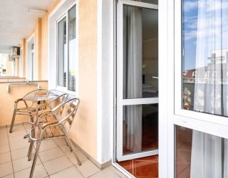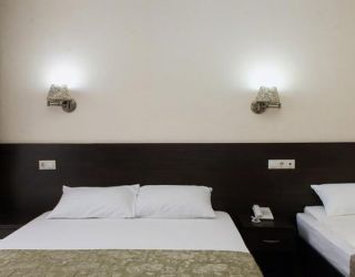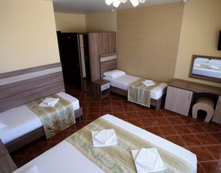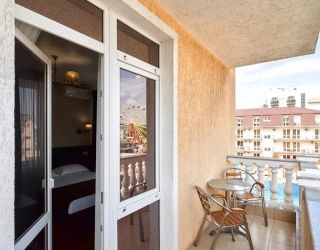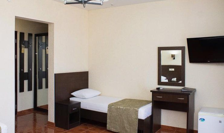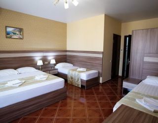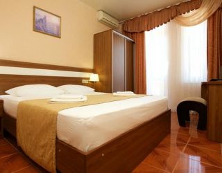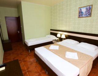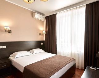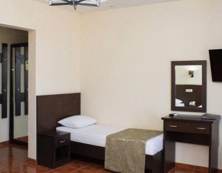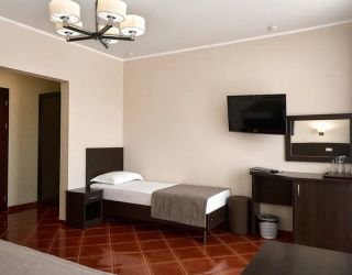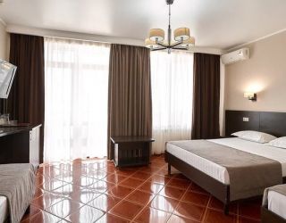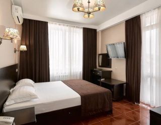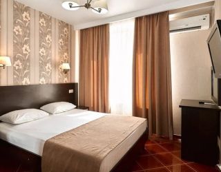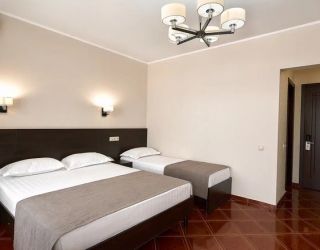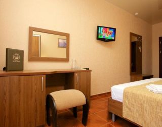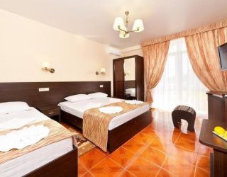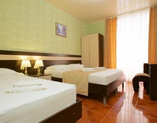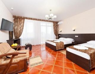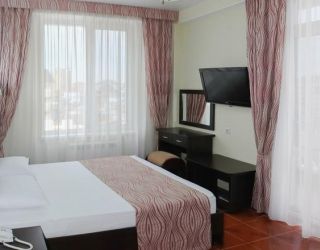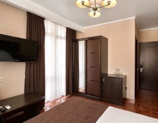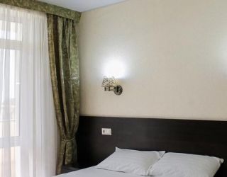 Семиэтажное здание отеля, оборудованное лифтом, стоит на собственной территории, благоустроенной и охраняемой. В его жилом фонде, способном одновременно принять на заселение не менее 220 человек, есть номера разных категорий от «люкса» до «стандарта». Каждый из этих просторных номеров, кроме расположенных на первом этаже, имеют меблированные балконы. В них всех есть автономный санузел с душем, обеспеченным туалетными принадлежностями и феном. Все номера имеют необходимый набор бытовой техники: сплит-систему, холодильник, телевизор и Wi-Fi.
