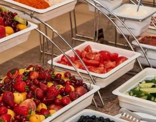 - промежуточное питание: алкогольные напитки (с 10:00-22:00 вино, пиво, водка); безалкогольные напитки (лимонады, пакетированные соки, морсы, вода); хлебобулочные изделия (10:00-22:00); мороженое (с 12:00-15:00, 16:00-18:00)