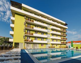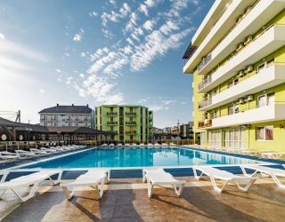 Поездом до ж/д вокзала г. Анапы, далее 69 м до остановки «Вокзал Анапа», далее на маршрутном такси №120 до остановки «Паралия», далее пройти пешком 370 м до отеля.