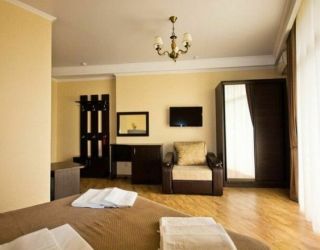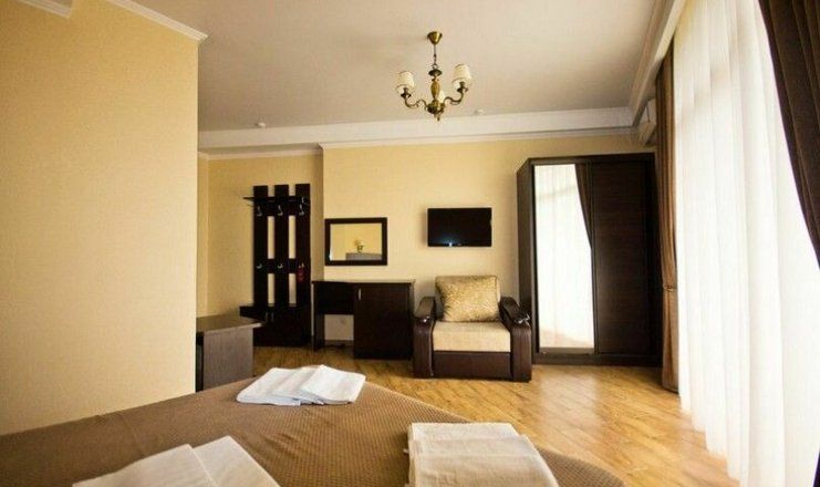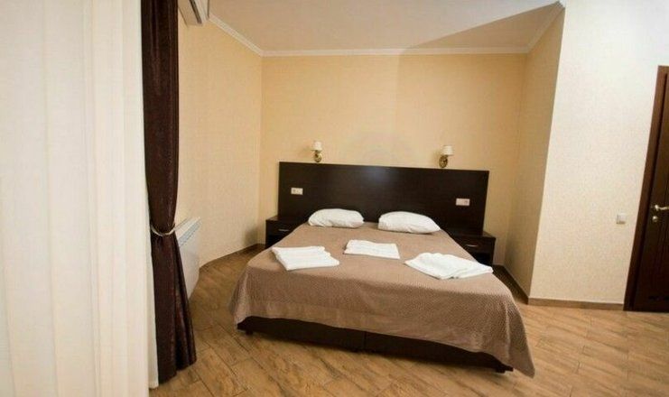 Белоснежный четырехэтажный корпус размесился на Южном проспекте. В распоряжении гостей 34 уютных номера, способных вмесить от одного до четырех человек. В каждом номере есть кондиционер, удобная мебель, плазменный телевизор. Большинство номеров оснащены индивидуальной ванной комнатой, а в бюджетных вариантах санузел общий на несколько номеров.