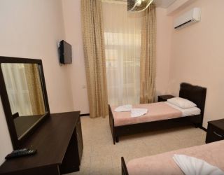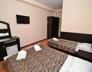 Трехэтажный корпус гостевого дома, занимающий небольшую территорию среди малоэтажной застройки Анапы, состоит из 31 номера. В каждом предусмотрена собственная ванная комната, установлен кондиционер, есть плазменный телевизор и мини-холодильник.