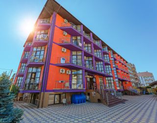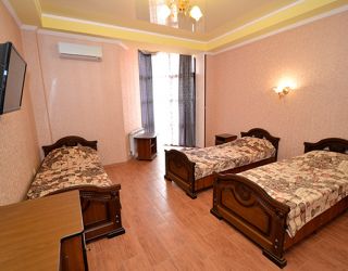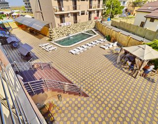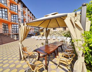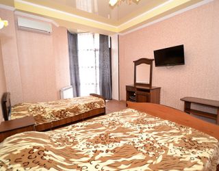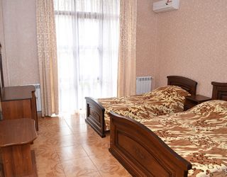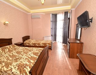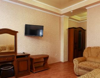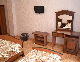 На огороженной и благоустроенной территории отеля возвышается 4-этажное здание отеля с жилым фондом, способным одновременно вместить до 250 человек. Номера категории «люкс» и «стандарт» с разным количеством комнат и мест обеспечены санузлами с ванной или душем и туалетными принадлежностями. Номера «стандарт эконом» – с одним санузлом на блок в три номера. В каждом номере есть необходимая бытовая техника: сплит-система, мини-холодильник, телевизор и Wi-Fi, другие удобства.
