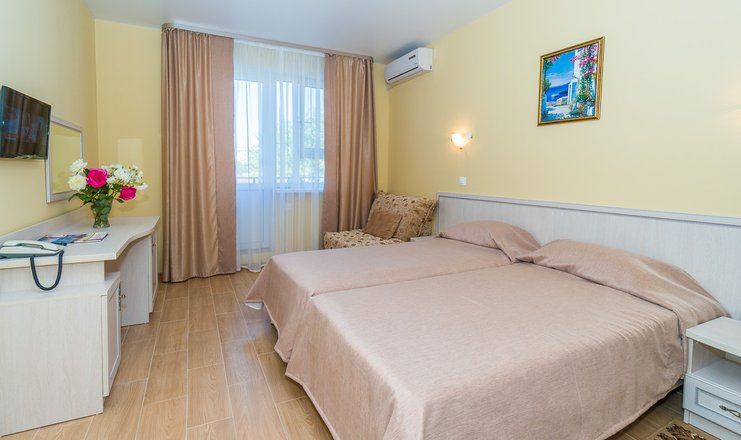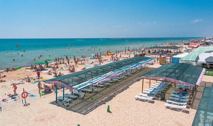 Пляж песчаный в 350 м от отеля. Территория пляжа огорожена, находится под видеонаблюдением, имеются теневые навесы, лежаки, волейбольная площадка, спасательный и медицинский пункт, раздевалки, душевые, кулер с питьевой водой