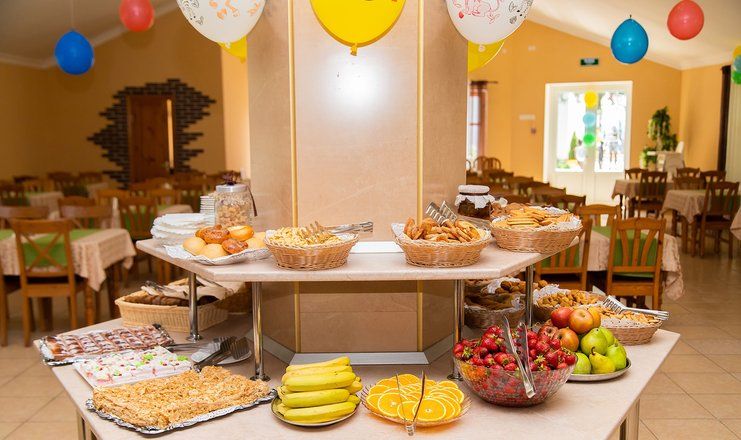 - 3-разовое шведский стол (промежуточное: разнообразная пицца, блины с различными наполнителями, фрукты, чай, кофе)