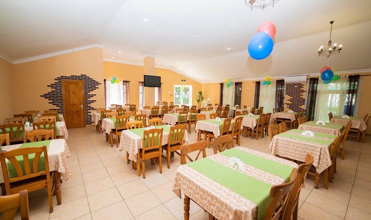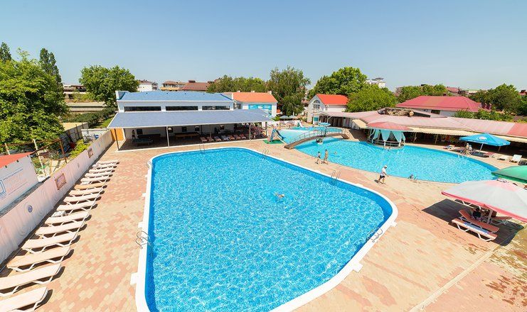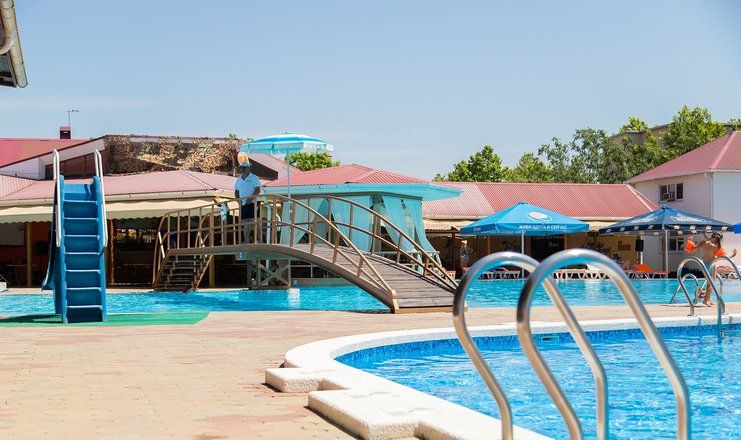 В столовой санатория гости могут заказать себе полноценной питание, также на территории работают бар и кафе «Казачий Курень». К услугам отдыхающих комплекс бассейнов: 4 открытых подогреваемых бассейна, один из которых детский, с горками и фонтанами. Вокруг расположены комфортные релакс-зоны с навесами и зонтами. Также есть крытый бассейн, сауна и спа-салон с косметологическим и массажным кабинетами.