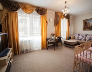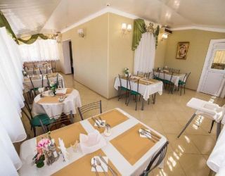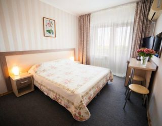 Современный корпус имеет высоту в 4 этажа. Номерной фонд гостевого дома различный. Комнаты светлые и уютные, в них есть все для комфортного проживания. Номера оснащены удобной мягкой мебелью, шкафом для хранения одежды, кондиционером, телевизором с плоским экраном, Wi-Fi. Санузел отдельный для каждого номера, в нем есть душевая кабина, фен и косметические принадлежности. На территории гостевого дома организовано питание в столовой. Можно насладиться широким ассортиментом блюд, выпечкой и напитками. Во дворе есть мангальная зона для самостоятельного приготовления шашлыка и прочих блюд на углях.