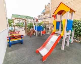 На улице для детей обустроена площадка для игр и развлечений. В корпусе есть специальная комната с игрушками для юных постояльцев. Самым маленьким предлагаются стульчики для кормления и прогулочные коляски. Гостевой дом находится на второй береговой линии. Расстояние до песчаного пляжа составляет всего 700 метров.
