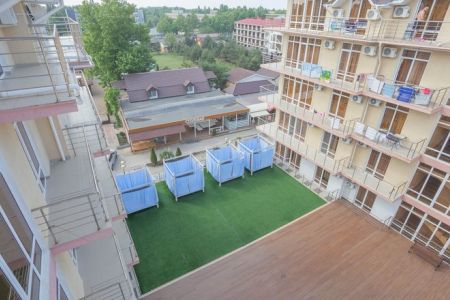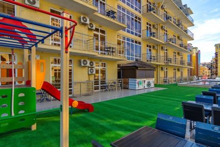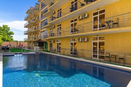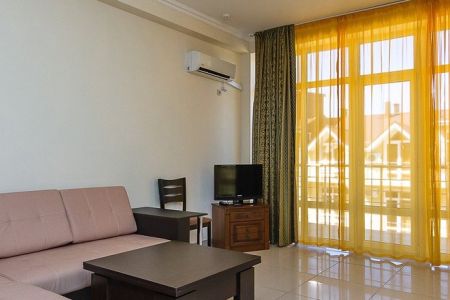 Самолетом до аэропорта г. Анапы, далее на маршрутном такси №127 до остановки «Аквапарк», далее на маршрутном такси №114 до остановки «Бульвар Шардоне», далее 221 м до отеля.