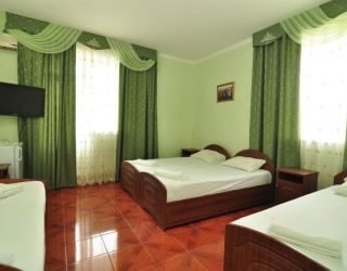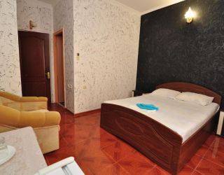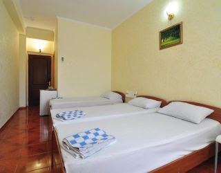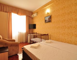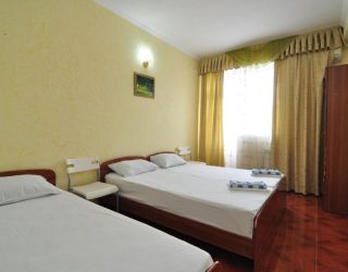 Четырехэтажный корпус отеля (без лифта) занимает закрытую благоустроенную территорию площадью 1,5 гектара. Жилой фонд, рассчитанный на 130 человек, предлагает гостям стандартные номера, оборудованные плит-системой и душем. В каждой комнате есть телевизор, холодильник и удобный мебельный гарнитур.