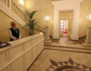 Корпус №2 «Усадьба» – 3-этажное здание 19 века в классическом стиле с 22 комфортабельными 2-комнатными или 2-уровневыми люксами. Внутреннее пространство усадьбы отличается монументальностью и роскошью, интерьеры парадных залов и лестниц украшены изысканной мебелью, стилизованной под старину, колоннами и коврами. Множество окон открывает виды на прекрасный парк