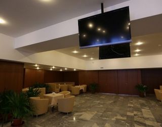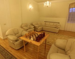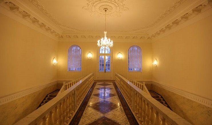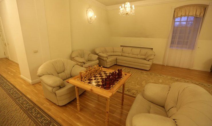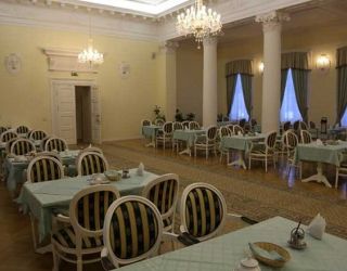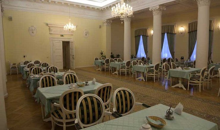 В здании дворца имеются: бар, тренажёрный, спортивный и бильярдный зал, настольный теннис, холлы для тихих игр, парикмахерская, финская баня с купелью. Диетическое питание по заказному меню для гостей корпуса организовано в нарядном обеденном зале на 80 посадочных мест