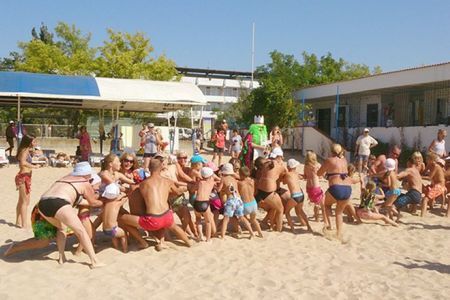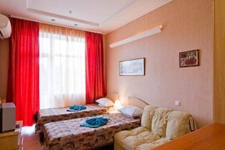 Самолетом до ж/д г. Симферополь, далее пройти 320 м до остановки, далее на маршрутном такси «Симферополь – Евпатория» до остановки «Автовокзал Евпатория», далее на рейсовом автобусе №8 до остановки «ул. Гайдара», далее 2 км до пансионата.