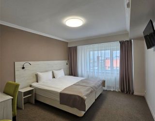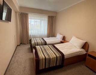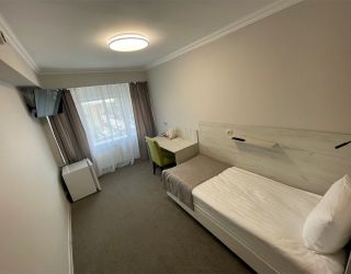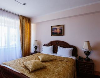 5-ти этажное здание отеля, оснащенное лифтом, рассчитано на единовременное размещение до 140 человек. Гостям предлагаются 1-но местные и 2-х местные номера категории Бизнес, Стандарт и Эконом. В номерах есть мебельный гарнитур, холодильник, телевизор, санузел с ванной или душевой.