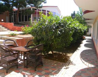 Пансионат расположен на второй береговой линии, расстояние до моря 150 метров, в самом центре курортной зоны поселка. В 50 метрах от пансионата находится продуктовый магазин, до набережной 100 метров, где и находятся различные кафе, рестораны, развлечения, а также рынок.