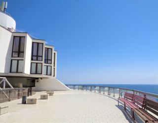 На санаторном пляже в 50 метрах от жилого корпуса есть лежаки и теневые зоны, душ и туалет. Спуститься к морю и подняться в номер можно внутренним лифтом здравницы. Такой комфорт отдыхающим могут обеспечить лишь считанные прибрежные отели высокого класса.