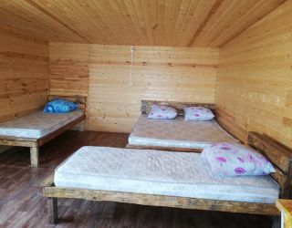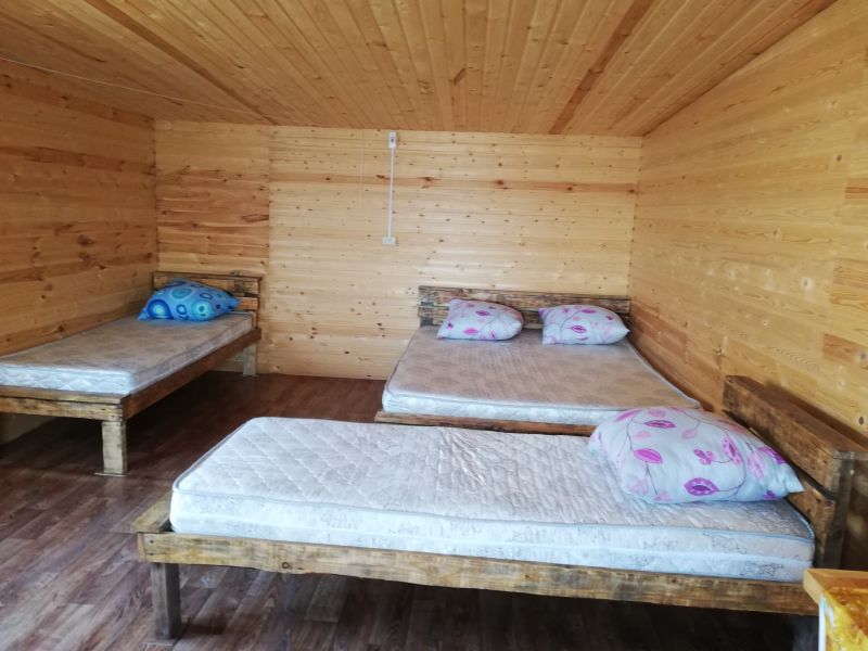 Для размещения на территории предусмотрены 4-местные домики, укомплектованные необходимой мебелью - две односпальные кровати, одна двуспальная кровать, стол и четыре стула, вешалка для одежды, лампы, вентилятор, холодильник, телевизор. На кроватях есть матрасы и подушки. Постельное белье, ка и посуда, не предоставляются, поэтому желательно привезти свое. Туалеты и душевые кабины расположены на территории, на расстоянии 50-100 м от домов. Оборудовано 6 кабинок санузлов отдельно как для мужчин, так и для женщин, и 5 душевых кабинок с горячей и холодной водой. Время подачи горячей воды с 18.00 до 22.00 часов.