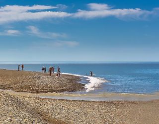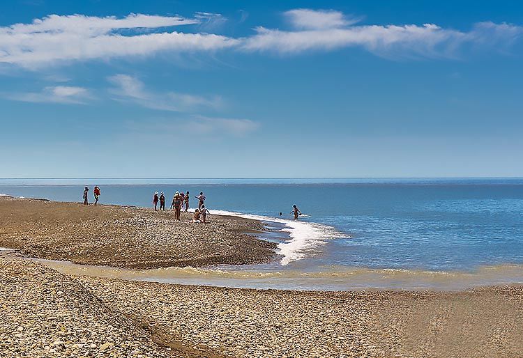 Поездом или самолетом – до г. Сочи (Адлер), далее на общественном транспорте или на такси до «Казачьего рынка» (8 км от ж/д вокзала, 15 км от аэропорта), затем пройти пешком около 500 м до пограничного поста на р. Псоу до границы России и Абхазии. После самостоятельного прохождения паспортного и таможенного контроля до места отдыха можно доехать на автобусе, маршрутном такси или воспользоваться услугами частных водителей.