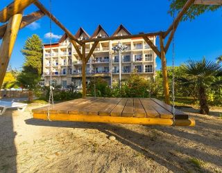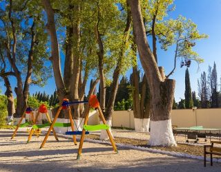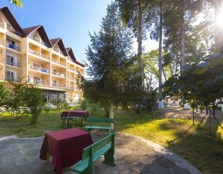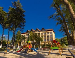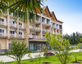 Пятиэтажное здание пансионата «Ривьеры» (Абхазия) окружено великолепными южными растениями – кипарисами, соснами, самшитом, магнолией, деревьями фейхоа. В округе много виноградных плантаций. По соседству нет шумных ресторанов и клубов, поэтому «Ривьера» идеально подходит для уединенного отдыха, семейного отпуска с детьми.