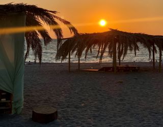 К широкому пляжу с песком и галькой ведет исхоженная дорожка. Здесь за дополнительную плату можно взять в аренду шезлонги и наслаждаться солнечными и морскими ваннами.