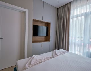 Апартаменты разной вместимости и уровня комфорта располагаются в 3-этажном здании. Комнаты выполнены в современном стиле, в них установлена удобная мебель, есть телевизор со спутниковыми каналами, кондиционер, Wi-Fi. Индивидуальная ванная комната оснащена душевой, гостям предоставляются полотенца, туалетно-косметические принадлежности. Номера оборудованы собственной кухней. Для самостоятельного приготовления еды есть общая кухня, а также мангальная зона на открытом воздухе.
